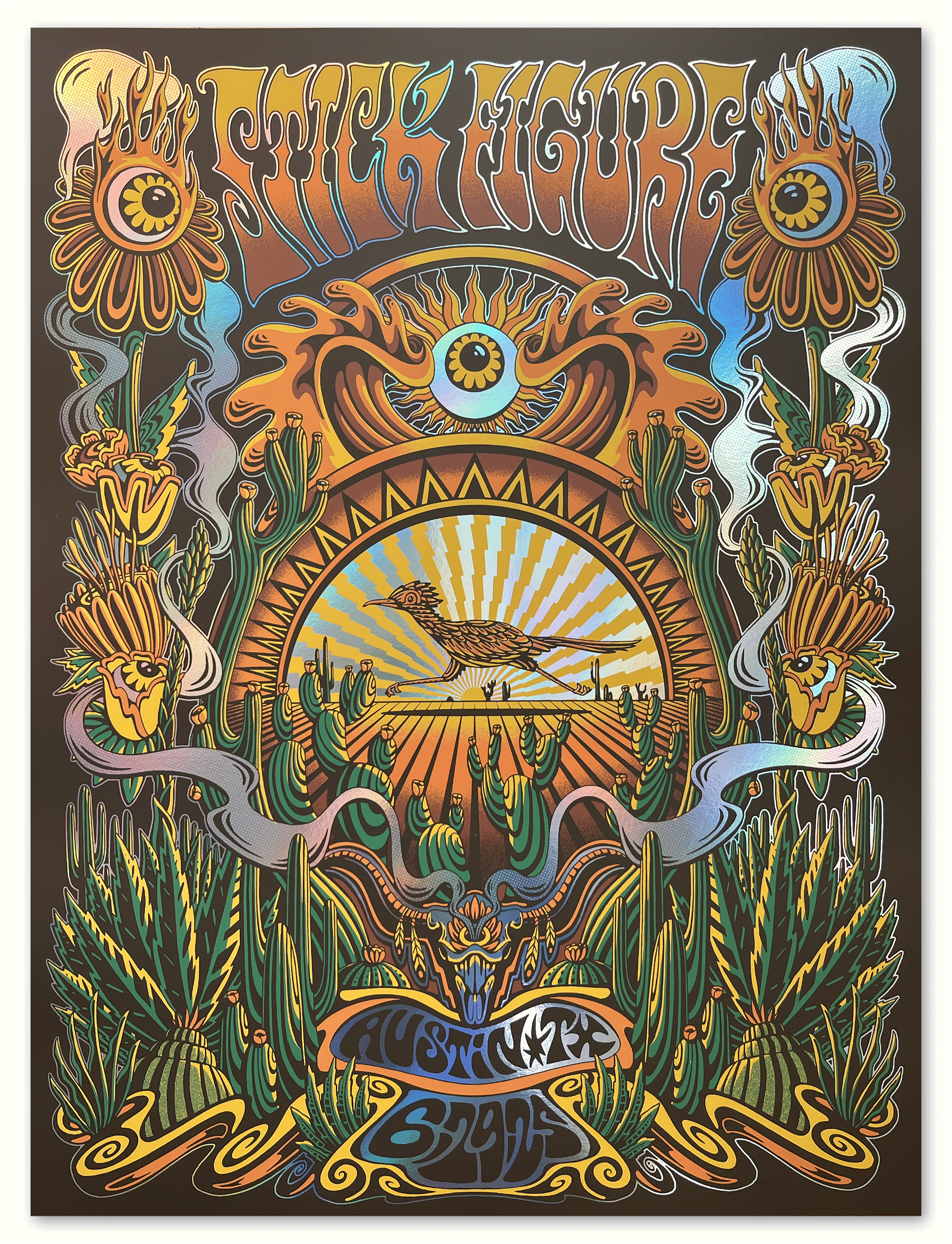 These are my artist copies of the poster I created for Stick Figure's show on June 29th, 2025 in Austin, TX.